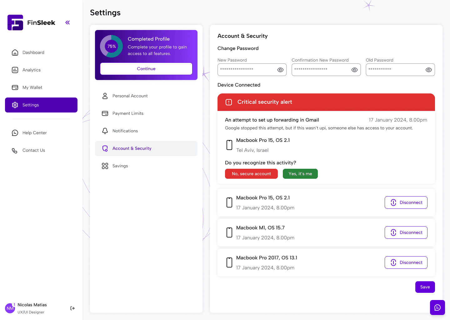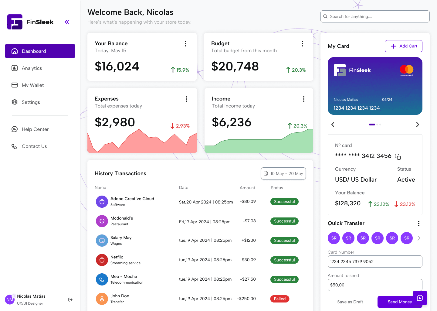 Dashboards with real-time financial analytics; Quick transactions with payment limits and savings flows; Account and card management features; Integrated help centre and security alerts; Platform customization and support options; Light & Dark Mode: Two configurations included by default; Ready-made layouts: Pre-designed templates for financial use cases; Responsive by default: Adapts seamlessly to mobile, tablet, and desktop;
